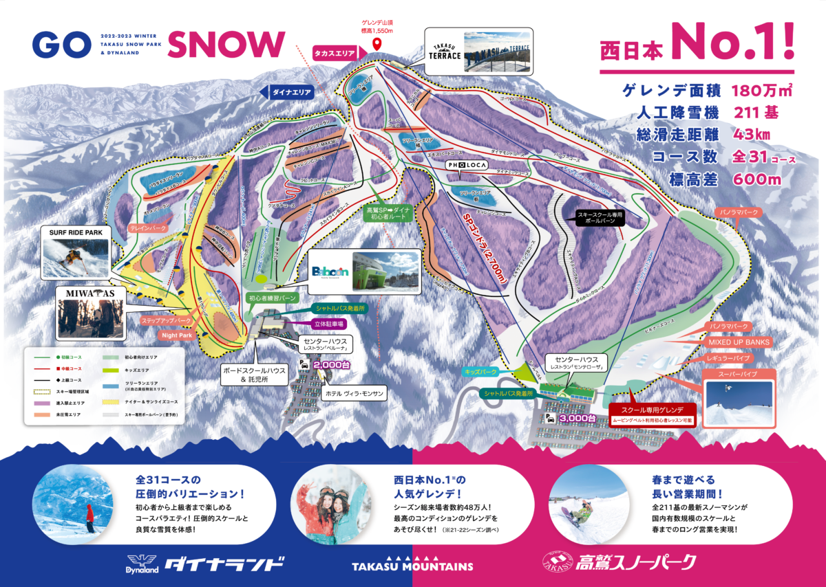 Make sure to buy a lift ticket for both Dynaland and Takasu Snow Park, a ski resort located right next to Dynaland.