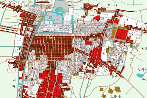 Following its relocation, Nagoya thrived. The city grew alongside the castle, largely driven by merchant activity. The urban landscape expanded with a block structure. The remains of the grid layout can be still found in present-day Nagoya.